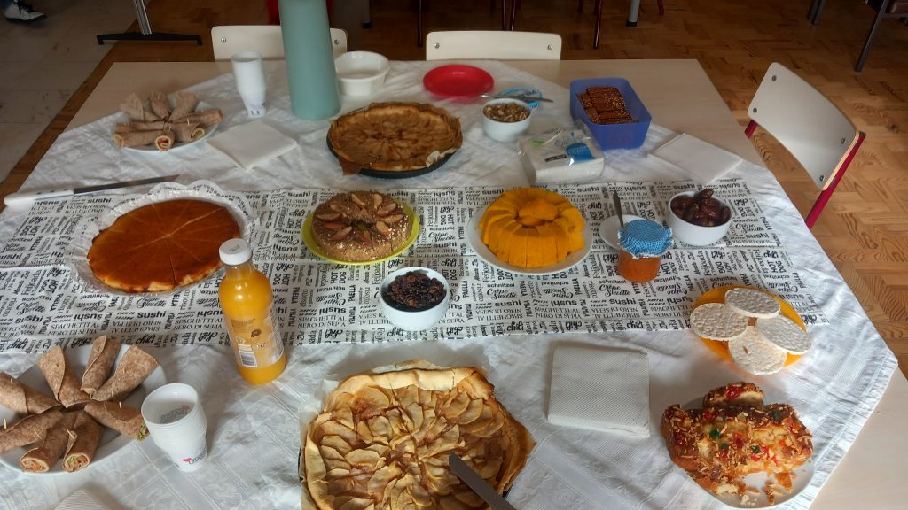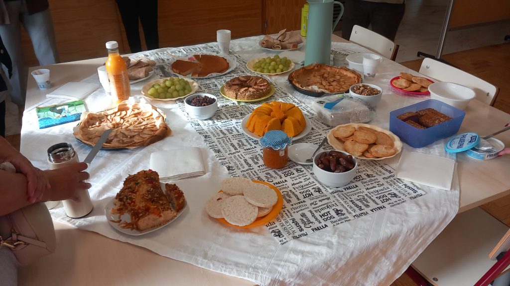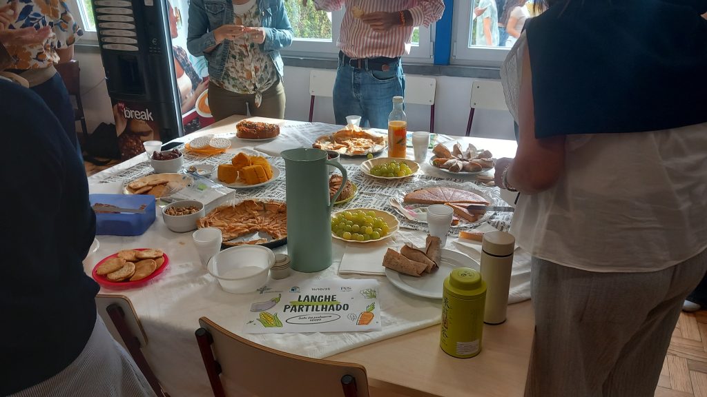 No dia 16 de outubro de 2025, o pessoal docente e não docente comemorou o “Dia Mundial da Alimentação” com um lanche partilhado, na sala dos professores. Cada elemento trouxe uma bebida ou alimento saudável. Com esta atividade foi possível partilhar receitas, promovendo hábitos alimentares saudáveis e um momento de convívio entre todos.