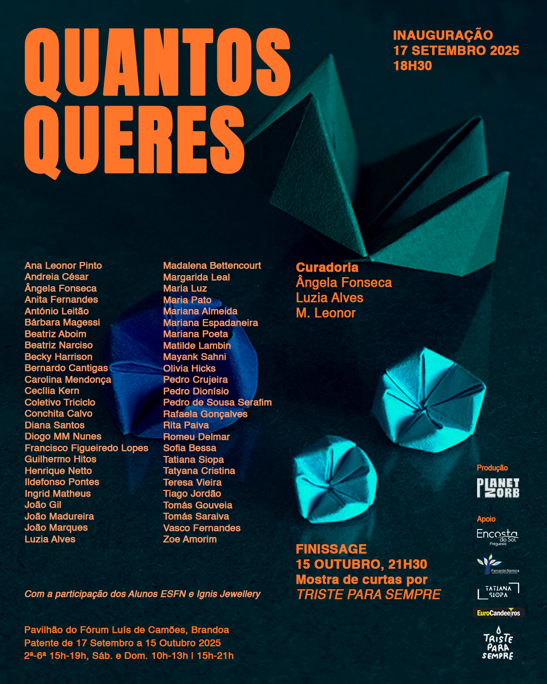 O Agrupamento de Escolas Fernando Namora, em parceria com o Planet Zorb, associação cultural, tem o prazer de vos convidar para a inauguração da exposição Quantos Queres, que terá lugar no dia 17 de setembro, pelas 18:30, no Pav. do Fórum Luís de Camões, e que conta com trabalhos de artistas emergentes e de alunos da ESFN.